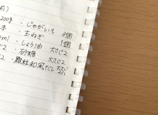 料理する時は手が濡れてスマホとかはあまり使いたくないので、ノートで見返すのが一番いいという結論になりました。